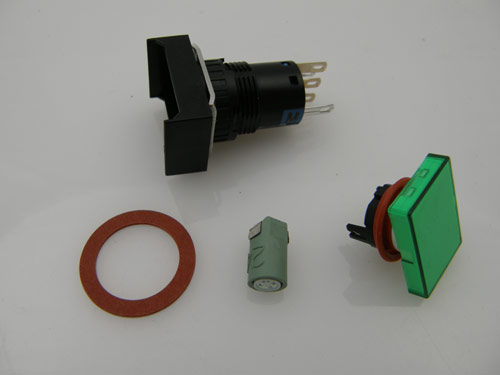 SWITCH PUSH BUTTON ASM 16MM RECTANGULAR OPERATOR W/CONTACTS MOMENTARY ILLUMINATED 24V GREEN LED FLUSH 1NO/1NC W/OILTITE GASKET |