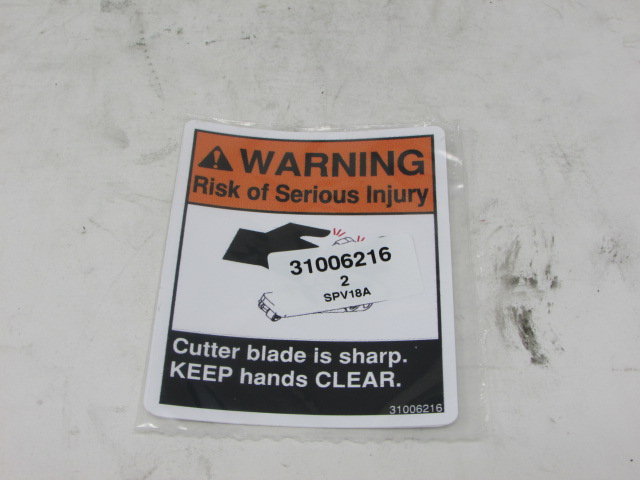 LABEL WARNING 'CUTTER BLADE IS SHARP'